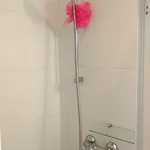 Et badeværelse med en bruser og en vask samt en hårtørrer og håndklæder er til rådighed.
